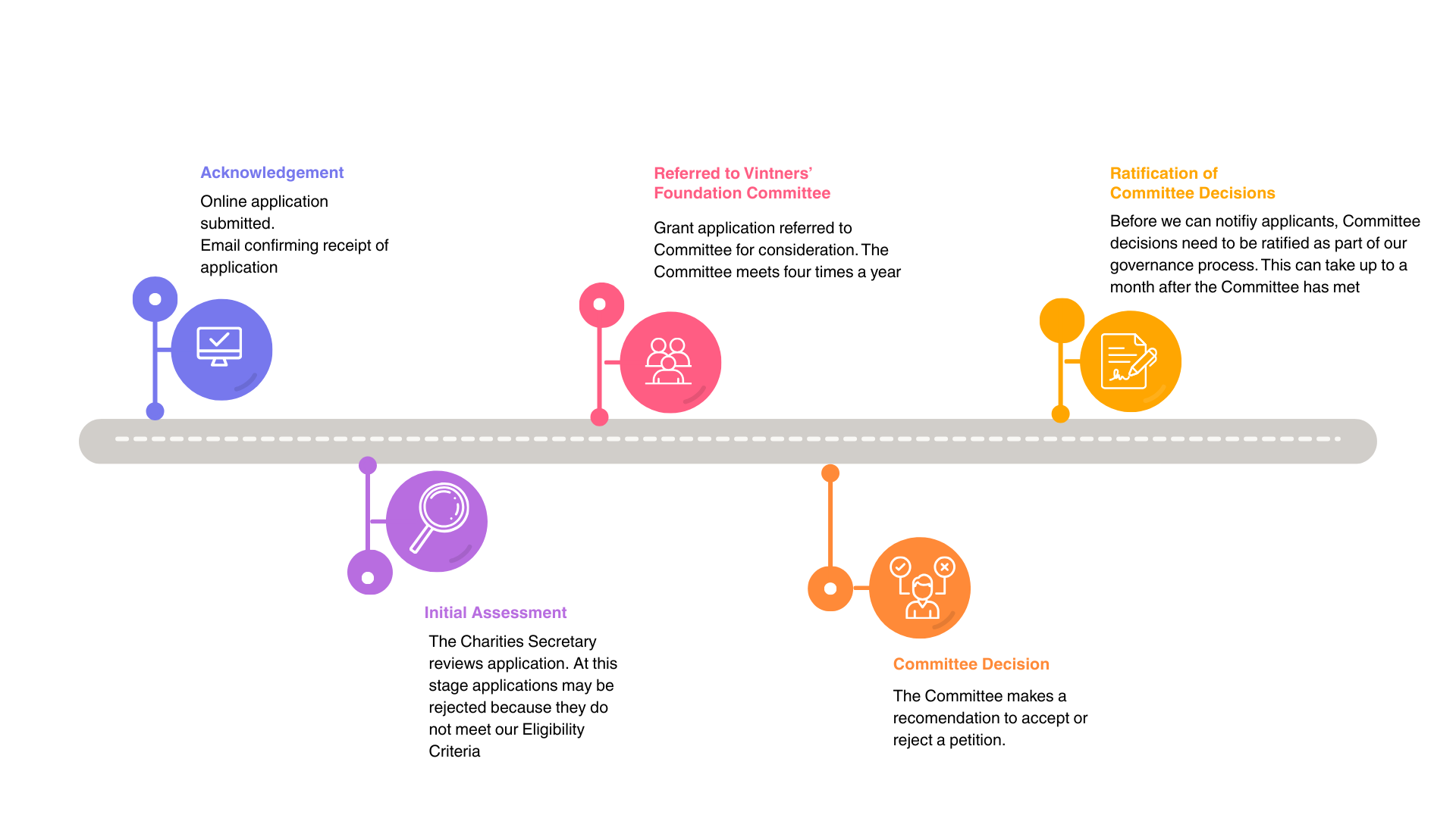 All charity support, grants and bursaries are decided and administered by either the Vintners' Foundation Committee (VF) or the Trade Liaison Committee (TLC).